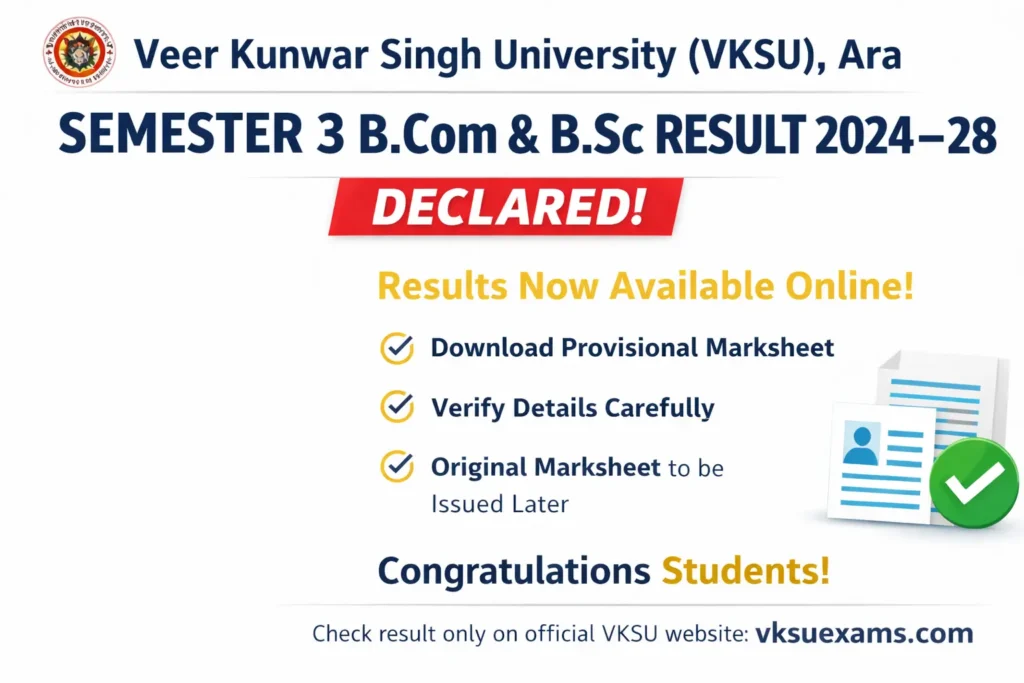VKSU Semester 3 Result 2024–28 LIVE: B.Sc & B.Com Declared, BA Awaited university update / manish Kumar